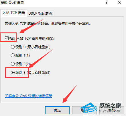 4、勾选“指定入站TCP吞吐量级别”,选择“级别3”,点击“确定”。