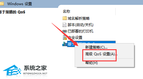 3、右击“基于策略的Qos”,选择“高级Qos设置”。