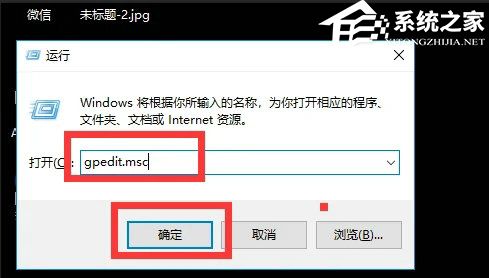 2、输入“gpedit.msc”命令点击确定;