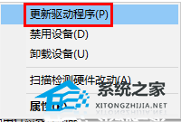 2、之后找到相对应的蓝牙设备,鼠标右击,选择“更新驱动程序”。
