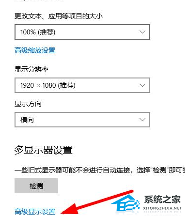 2、调出屏幕分辨率设置窗口后,点击打开高级设置选项,如图所示: