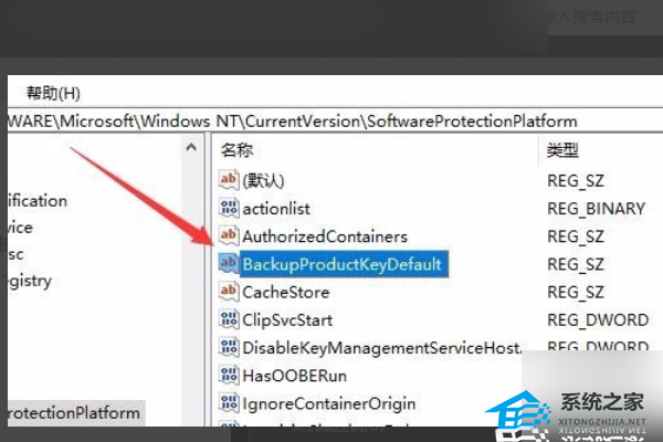 4、接着在右侧的窗口中找到BackupProductKeyDefault注册表键值。