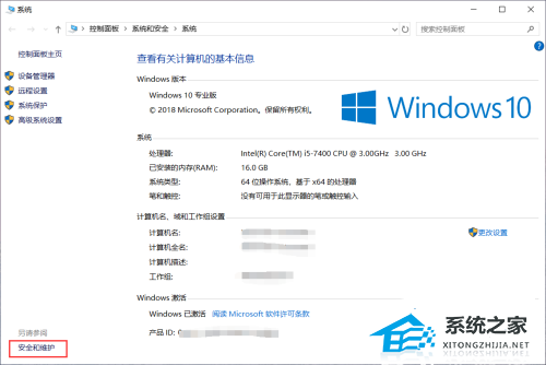 2、打开左下角的“安全与维护”;