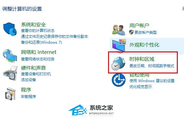 2、点击“时钟和区域”。