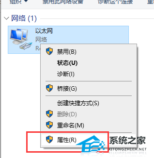 2、右击以太网,点击属性。