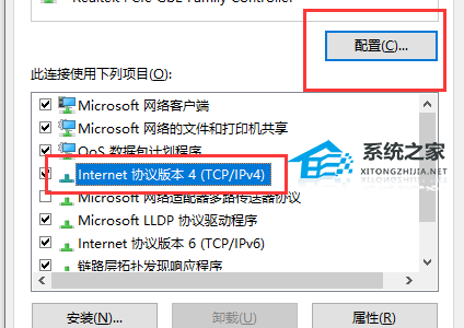 3、找到协议版本4,点击配置。