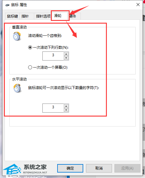 4、点击“滑轮”显示卡,可以调节滑轮的滚动速度。