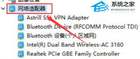5、接着在设备管理器中展开“网络适配器”将下面的网卡打开属性,同样将“允许计算机关闭此设备以节约电源”的选项的勾去掉并点击确定保存。