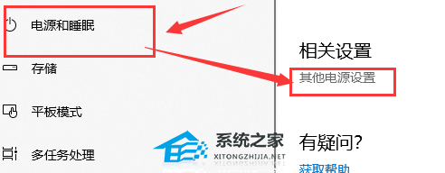 2、在左侧点击“电源和睡眠”,拉到下面的“其他电源设置”。