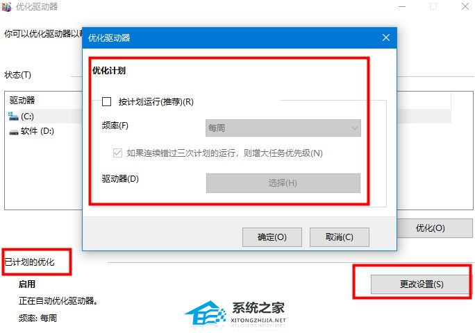 3、在已计划的优化处——点更改设置——取消勾选计划。