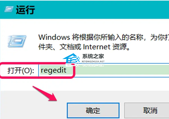 1、按键盘上的【 Win + R 】组合键,打开运行,然后输入【regedit】命令,按【确定或回车】打开注册表编辑器。