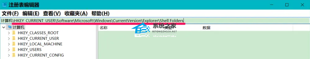 方法一:修改User Shell Folders中Desktop字符串值的数值数据