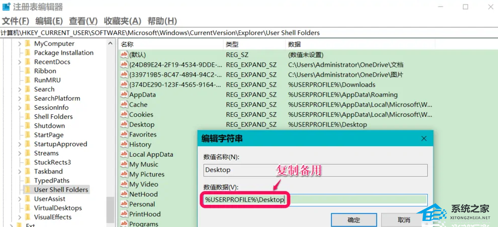 7、复制Desktop的数值数据【%USERPROFILE%\Desktop】备用。