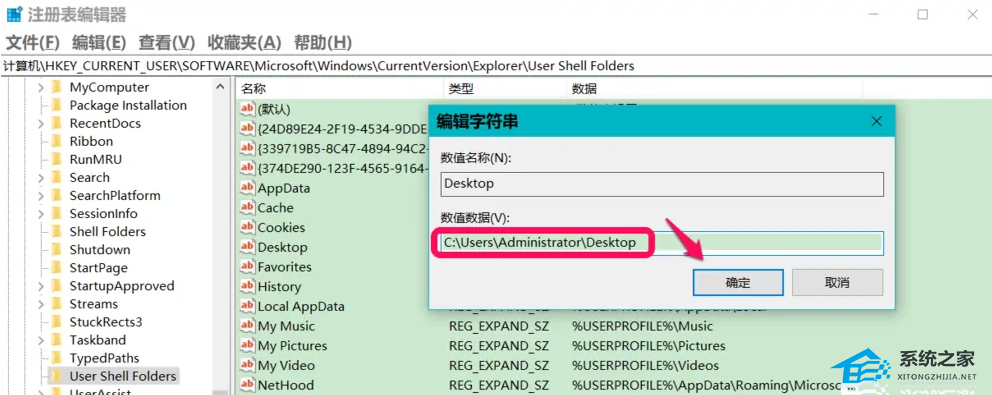 8、然后将【C:\Users\Administrator\Desktop】复制数值数据栏内,点击【确定】。