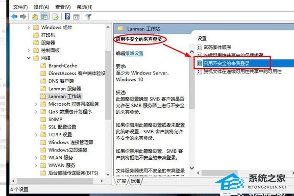 6、然后在界面内找到“启用不安全的来宾登录”选项并使用鼠标单击打开。