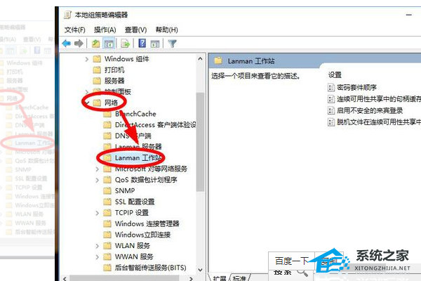 5、然后在界面内找到“网络”-“Lanman工作站”选项并使用鼠标单击。
