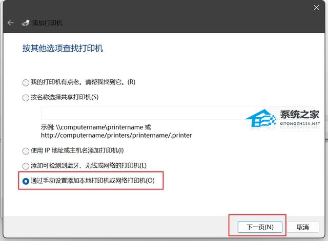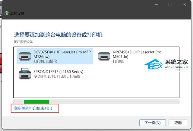 2、点击我所需的打印机未列出。