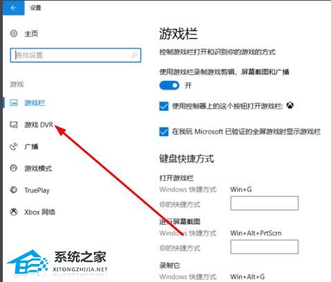 4、点击左侧“游戏 DVR”。