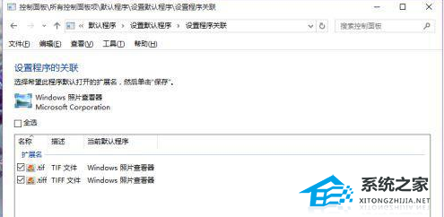 1、打开控制面板下的默认程序,设置默认程序,找到windows照片查看器,可以看到他默认打开的图片格式是.tiff和.tif。