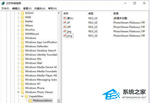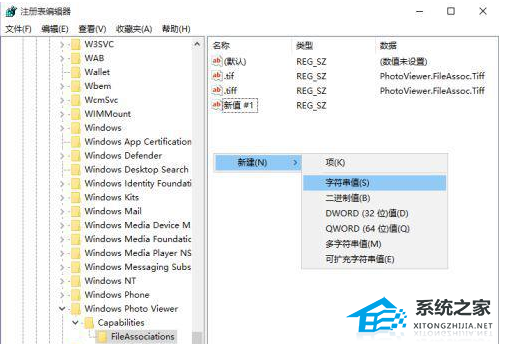 3、展开: HKEY_LOCAL_MACHINESOFTWAREMicrosoftWindowPhoto ViewerCapabilitiesFileAssociations 。在右侧新建“字符串值”,将新建值名称改为要关联的文件扩展名,比 如“.jpg”、“png”等等,数值数据填写为“PhotoViewer.FileAssoc.Tiff”。