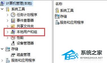 5、在计算机管理中选择点击“本地用户和组”。
