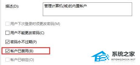 7、将“账户已禁用”前面的√取消即可。