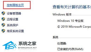 2、进入属性之后点击左上角的“控制面板主页”。
