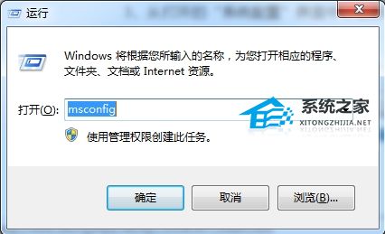 2. 此时我们进入通过以下设置实现进入自动进入“安全模式”的操作。在Windows桌面中,打开“运行”窗口,输入“msconfig”命令进入系统配置策略界面。