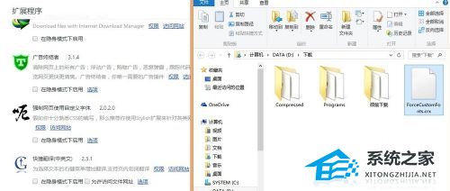 3、打开chrome浏览器菜单栏-设置-扩展程序,然后将ForceCustomFonts.crx拖动到扩展程序窗口会提示安装施讨。