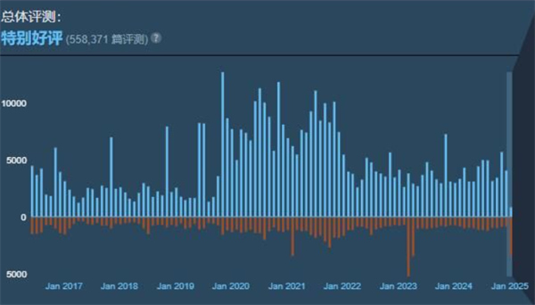 根据Steam平台的数据,1月8日当天,《黎明杀机》新增了3083条差评,原因主要集中在伊藤润二联动皮肤无法在国区使用。这一现象导致了该游戏最近30天的好评率仅为41%,相比整体好评率的80%有了大幅下降。