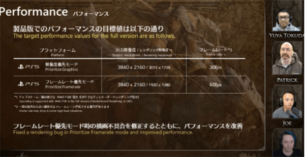 此外,在此前的《怪物猎人:荒野》直播活动中,制作人介绍了本作在主机平台上的图形表现。具体的性能参数如下: